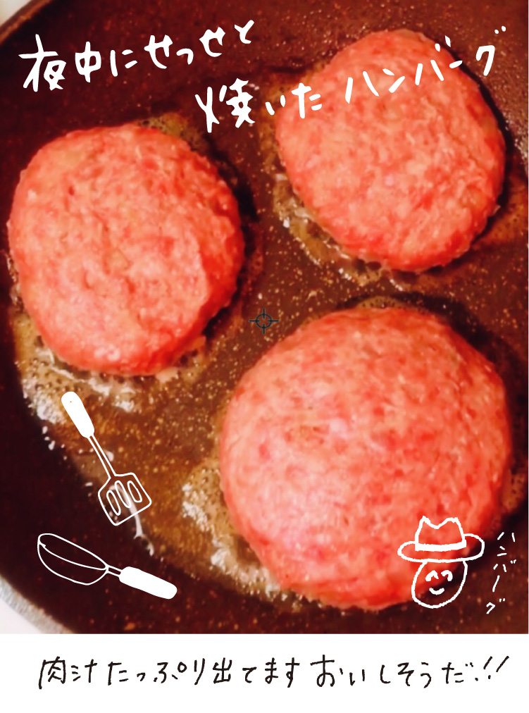 夜中にテレビ見てたらタイムリーなことに、ハンバーグは焼いてから冷凍するといいってやってて!そこから急いでひたすら焼き始めました。笑