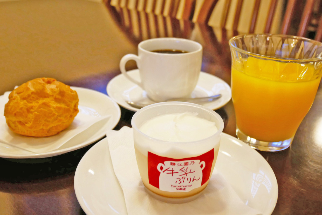 小さい子向けには「シュークリーム」150円(税込)や「牛乳プリン」250円(税込)が食べやすくておススメ。ドリンクとのセットで50円引き(350円以上は100円引き)になります。持ち帰りも可。テーブルには、ガラス板とアクリル板の仕切りを新しく設置し、感染対策も万全。