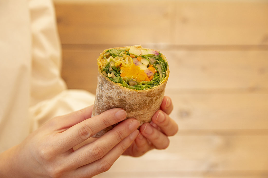 また、サラダを全粒粉のトルティーヤで包めば、さらに栄養価がアップ。片手で食べられる手軽さもうれしく、時間がないときにもしっかりパワーチャージできるので助かります!