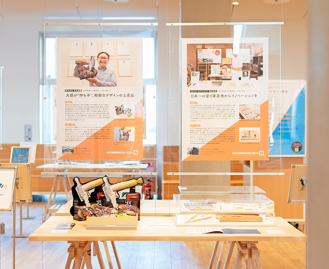 デザインの視点を積極的に取り入れ、企業ブランディングや商品開発、販路開拓に取り組んでいる県内企業10社の事例を紹介している「デザインコネクト展」が『福井ものづくりキャンパス』にて開催中。