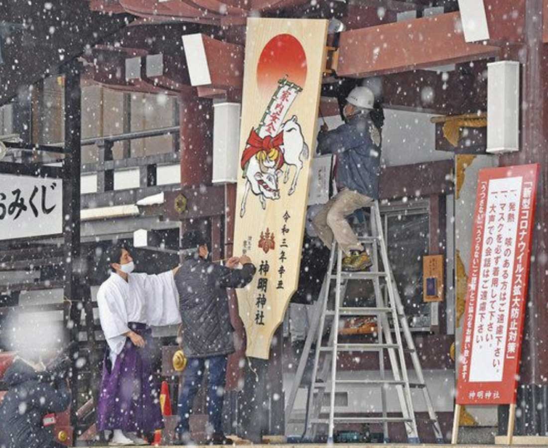 厄よけ巨大羽子板 福井・神明神社 inoue 5年前 降りしきる雪の中、巨大な羽子板が設置され迎春準備が進む境内=福井市の神明神社で(蓮覚寺宏絵撮影) 福井市宝永4の神明神社に16日、ジャンボ羽子板が設置された。厄よけの道具として参拝者の厄をはらうため、節分の来年2月2日まで設置する。 (日刊県民福井)続きはこちらから 日々URALAからのお知らせをLINEで受け取れます!