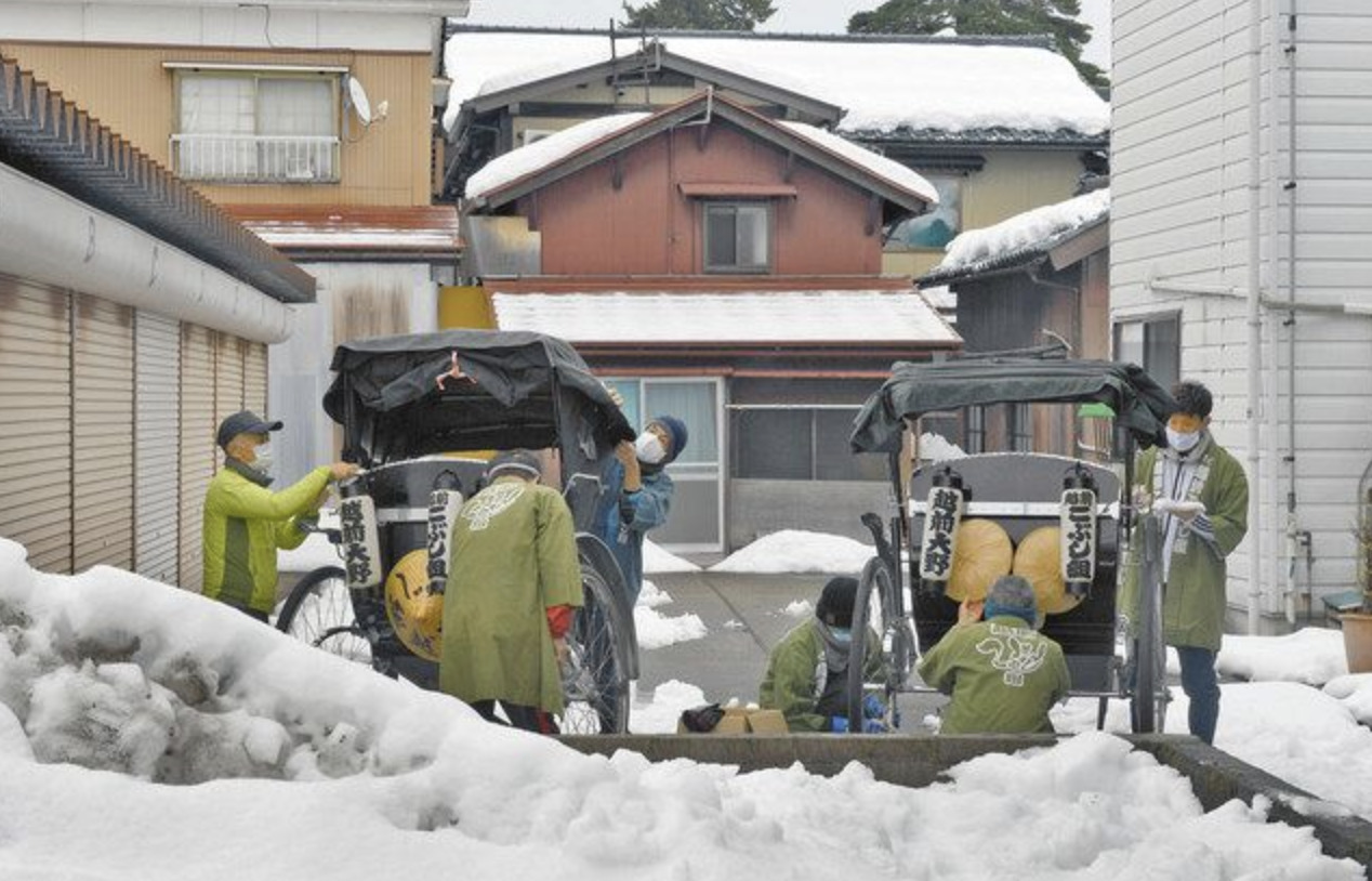 大野市街地を人力車で案内する有志グループ人力車「越前こぶし組」が27日、人力車の掃除をして1年間の労をねぎらった。