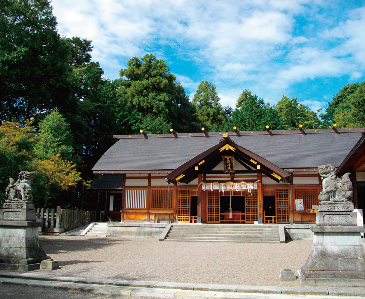 継体天皇が即位のため越前を旅立つ際、故郷の守り神となるべく生御霊を鎮めたといわれる地に建つ社。継体天皇は越前の繁栄を司る神として古くから崇拝され、農業や産業の発展の基礎を築き上げた神様だけに、商売繁盛や子授け、受験合格など人生の繁栄ごとに特にご利益があるとされている。