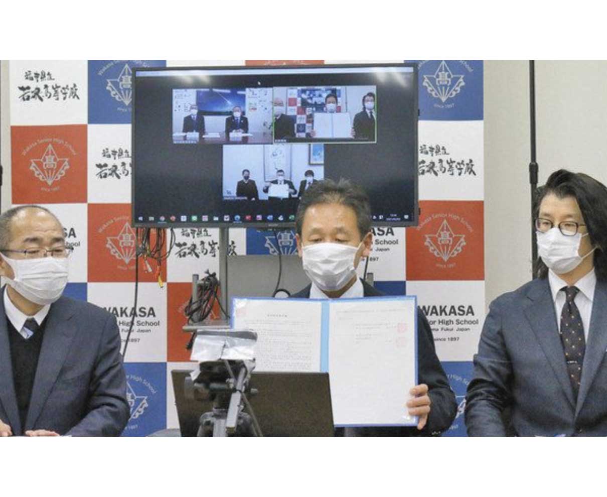 若狭高校と横浜国立大は、生徒自らが課題を設定して解決を目指す探究的な学習の授業改善モデル開発に取り組んでいる。両者は二日、二期目の共同研究の契約を締結した。若狭高生から集めたアンケートを同大教育学研究科が分析。学習の効果を科学的に検証し、授業内容や教員の指導力向上に役立てる。