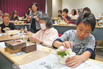 市民教養講座「あったか塾」(日刊県民福井・中日新聞社主催、福井市観光物産館福福館共催)が八日、同市のハピリン内にある福福小屋で開かれた。特殊な加工を施し、生花のような美しさを長く保てるプリザーブドフラワーを、初夏の雰囲気たっぷりに器に飾り付けた。