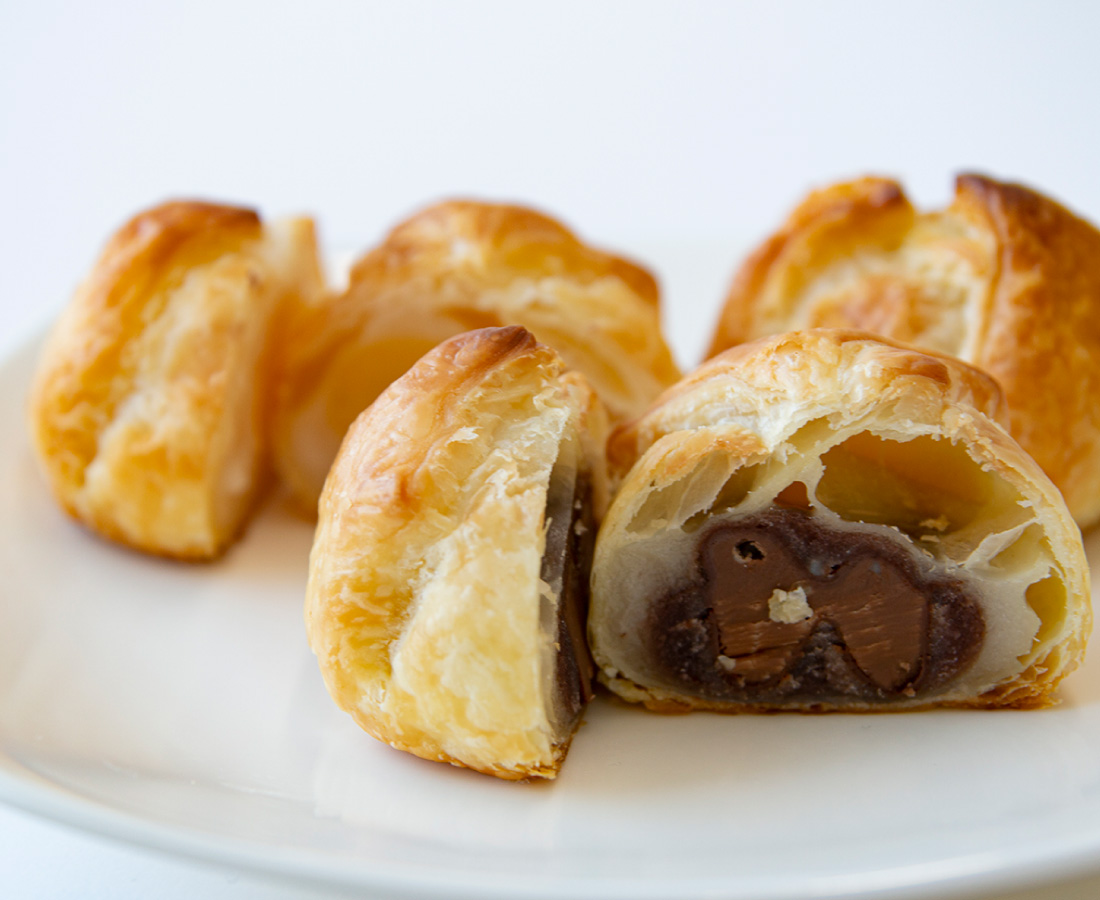 パイのサクサク感とお餅のもちもち感がクセに!定番のつぶあん、くり入り白あん、チョコの他、「りんご」「さつまいも」「いちご」など期間限定も登場!