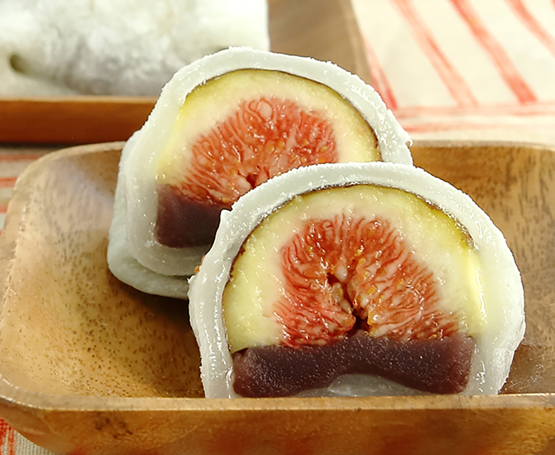 旬のフルーツをつかったお餅は10種類以上。その中でもインパクト大!な、いちじく餅は、ひと口噛めばいちじくの果汁が溢れ出すほどジューシー。