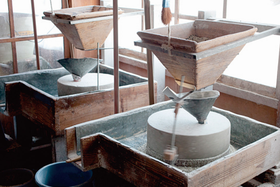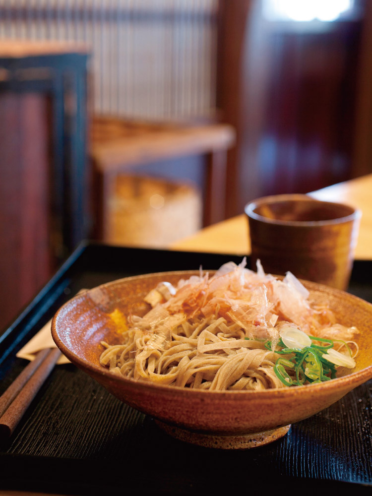 勝山の小さな通りにある、風情あふれるそば屋。店内の一角に、昔ながらの石臼や製粉機が並ぶ理由は、こちらでそばの製粉業も行っているから。製粉の知識と経験を持つ主人が、製粉の段階から吟味した、挽きたて・打ちたて・茹でたてのそばが味わえる。地元・勝山産のそば粉を使ったなめらかなのど越しの二八そばに、マイルドな辛味の食べやすいおろしダシを合わせていただく。