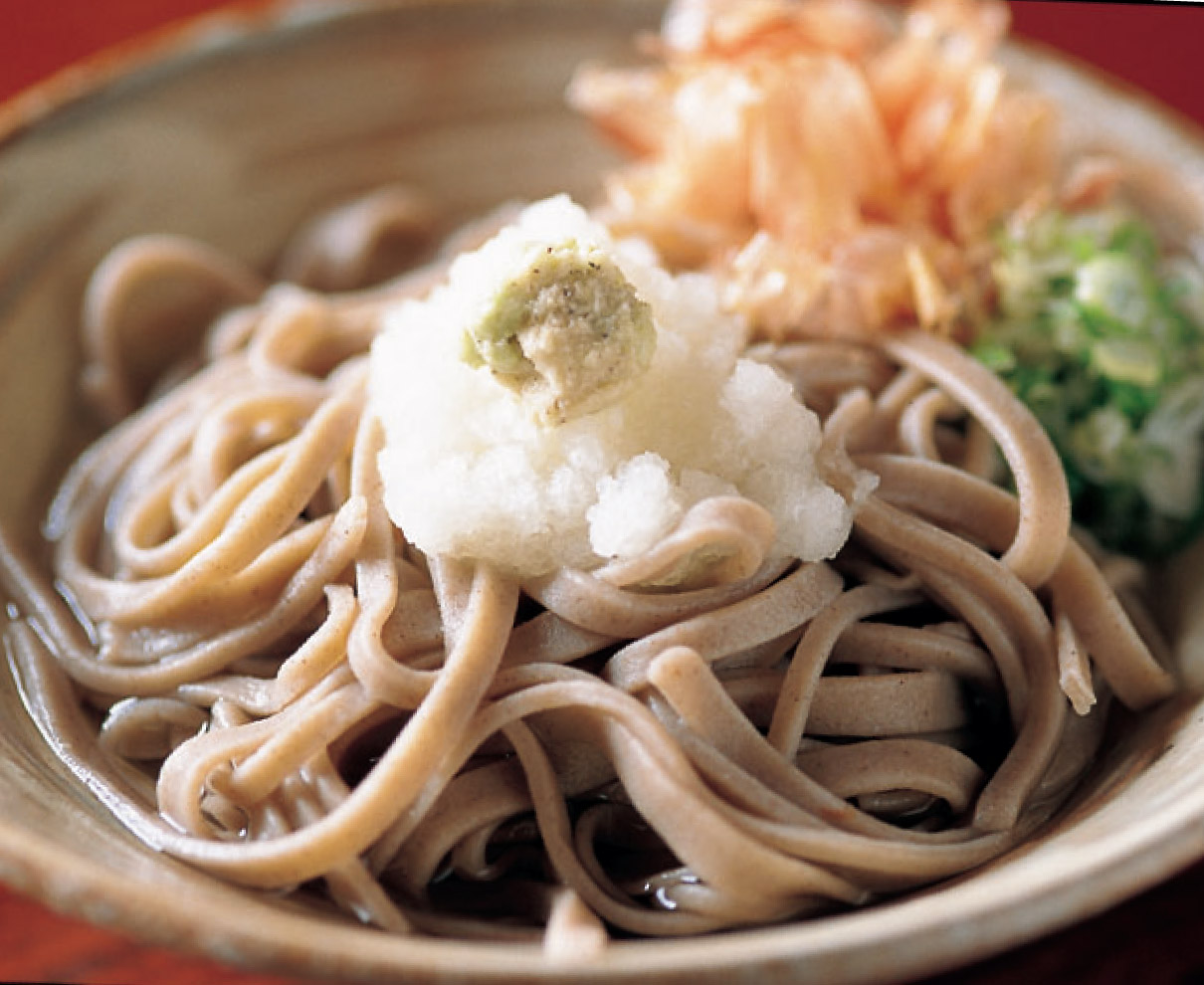 勝山の小さな通りにある、風情あふれるそば屋。店内の一角に、昔ながらの石臼や製粉機が並ぶ理由は、こちらでそばの製粉業も行っているから。製粉の知識と経験を持つ主人が、製粉の段階から吟味した、挽きたて・打ちたて・茹でたてのそばが味わえる。地元・勝山産のそば粉を使ったなめらかなのど越しの二八そばに、マイルドな辛味の食べやすいおろしダシを合わせていただく。