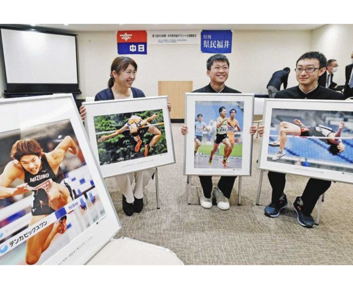 陸上競技で昨年、特に優秀な成績を収めた選手らをたたえる第十回中日新聞・日刊県民福井アスリート大賞(福井陸上競技協会共催)の贈呈式が十四日、福井市のザ・グランユアーズフクイで行われ、アスリート大賞に輝いた男子110メートル障害の金井大旺(たいおう)選手(ミズノ、福井陸協登録)ら四人が表彰された。 (谷出知謙)