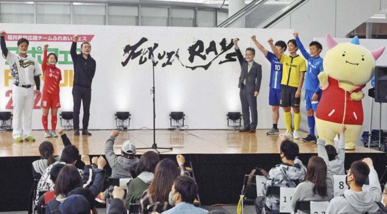 県内の五つのトップスポーツチームに対して、県が委嘱した「ふくい県民応援チーム」の愛称が28日、発表された。全国から集まった1033件のアイデアから厳選し、愛称は「FUKUIRAYS(フクイレイズ)」に決まった。