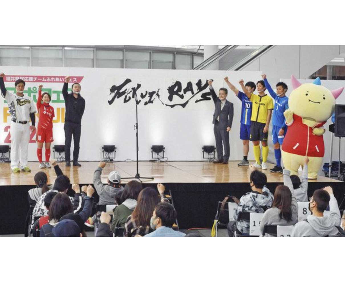 県内の五つのトップスポーツチームに対して、県が委嘱した「ふくい県民応援チーム」の愛称が28日、発表された。全国から集まった1033件のアイデアから厳選し、愛称は「FUKUIRAYS(フクイレイズ)」に決まった。