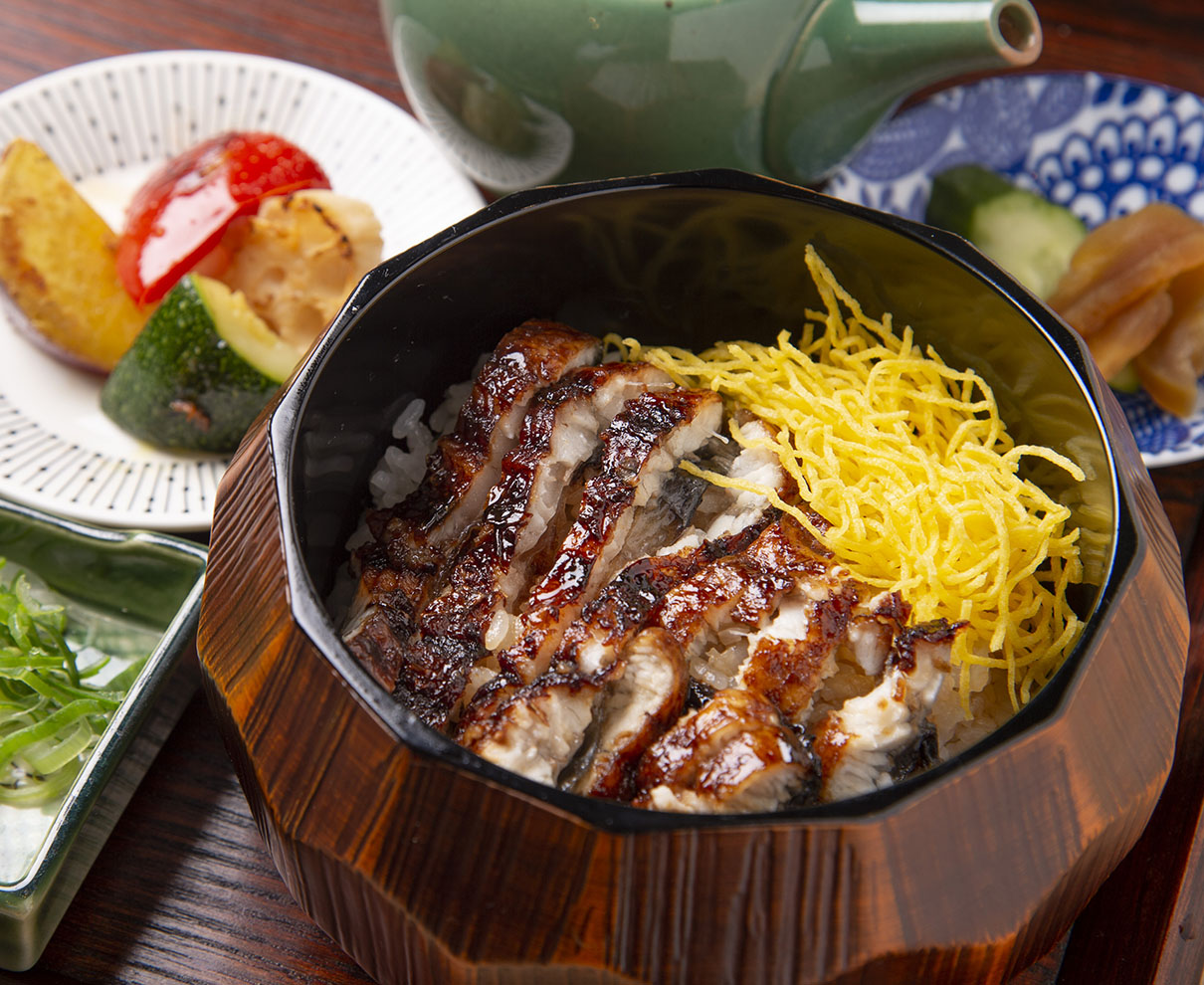 さて、となればメニューも大幅にリニューアル。「おでん」は辛味噌だけでなく、クレソンやゴマ、柚子などさまざまな味を楽しめるようにしているほか、「でんがく」はなんとスチームコンベクションを使って全体的に温まるように大胆な改良。ふっくら仕上げで豆腐の甘みが引き立つようになり、味わいは格段に上昇。ミシュランで星を取るようなレストランが使用するバーナーで焼き目を付けるなどもはや茶屋レベルじゃないくらいの逸品に。そして、新谷さんが「これを足羽山の新名物に」と意気込んでいるのが新メニュー「ひつまぶし」。
