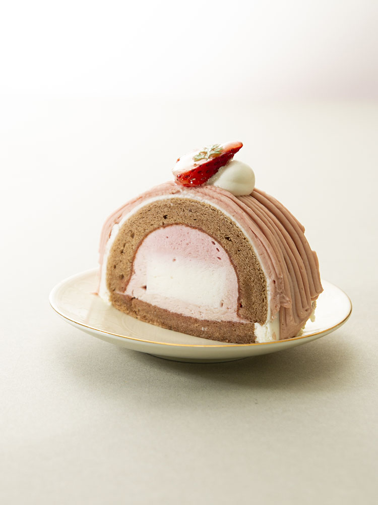 定番から季節限定品まで多彩なロールケーキを提供する専門店の「いちごのモンブラン」。たっぷりのいちごのクリームをモンブラン風に絞り、ココア生地で包むのはヨーグルトといちごのムース。いちごと相性抜群のヨーグルトを合わせることにより、口当たりが軽やかで驚くほどスッキリとした甘さに! 上にのるいちごもフレッシュでジューシーです。「これでもか!」というほどいちごの美味しさを楽しめるロールケーキを是非ご賞味あれ。(日々ウララ編集部・坂本)