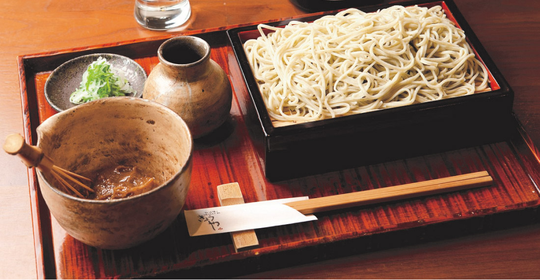 契約農家から丸岡産の玄そばを仕入れ、その日に使用する分だけを毎朝自家挽き。新鮮な手打ちそばは、香り高く風味も抜群だ。「おろしそば」は、鰹ダシに2種類のかえしを合わせたつゆをぶっかけでいただく「みぞれ」と、大根のしぼり汁に生醤油を合わせた辛めのつけ麺で味わう「しぼり」から選んで。ほかに、鴨せいろや牛すじ煮、天もりそばなども人気のメニュー。越前焼の器や河和田塗りのせいろ、越前和紙のメニュー表など店の随所に地元・福井への愛とこだわりが。大切な人をおもてなしする一店にふさわしい空間だ。