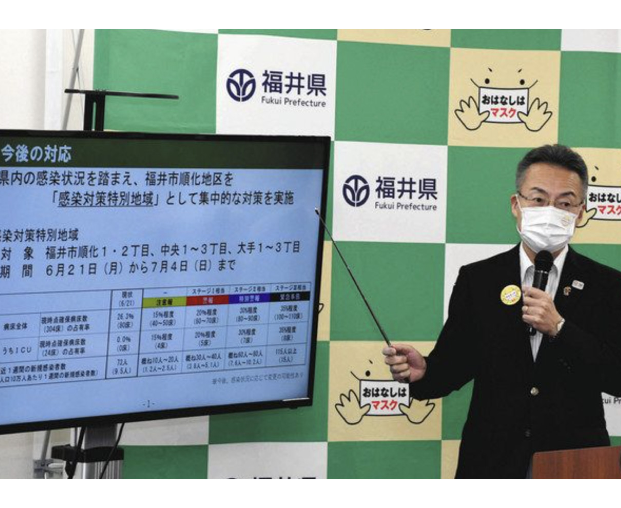 福井市中心部に位置する飲食店関係者らの間で新型コロナウイルス感染拡大が続いているとして県は二十一日、順化一、二と中央一〜三、大手一〜三を「感染対策特別地域」に指定した。七月四日まで業種、地域を限定し、飲食店関係者へのPCR検査など集中的な対策を講じる。 (山本洋児)