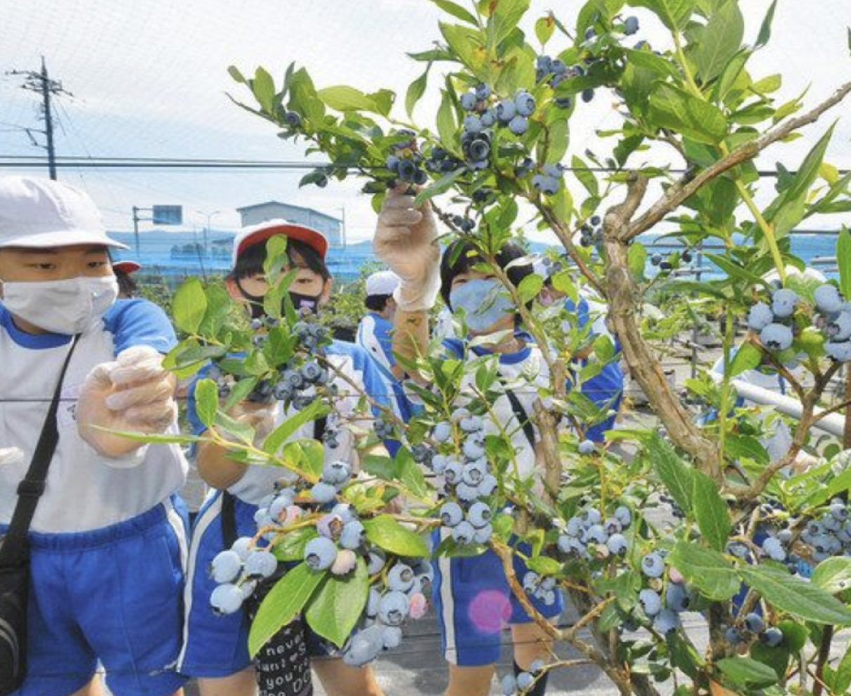 福井市東藤島小学校の五年生三十五人が二十一日、福井市間山町の「まやまさんちのブルーベリー園」でブルーベリーの実の摘み取り体験を楽しんだ。児童らは旬の品種を食べ比べ、「大粒だ」「甘酸っぱくておいしい」と歓声を上げていた。