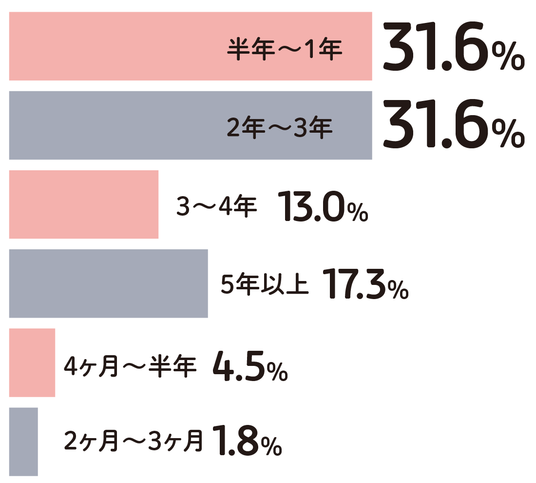 アンケートでは、結婚した年齢の最年少は19歳で最高齢は57歳と回答をいただきました。一方で独身者向けのアンケートでは27歳~30歳までに結婚したいという人が多数派。理想よりも少し早めに結婚する人が多いのかも!?