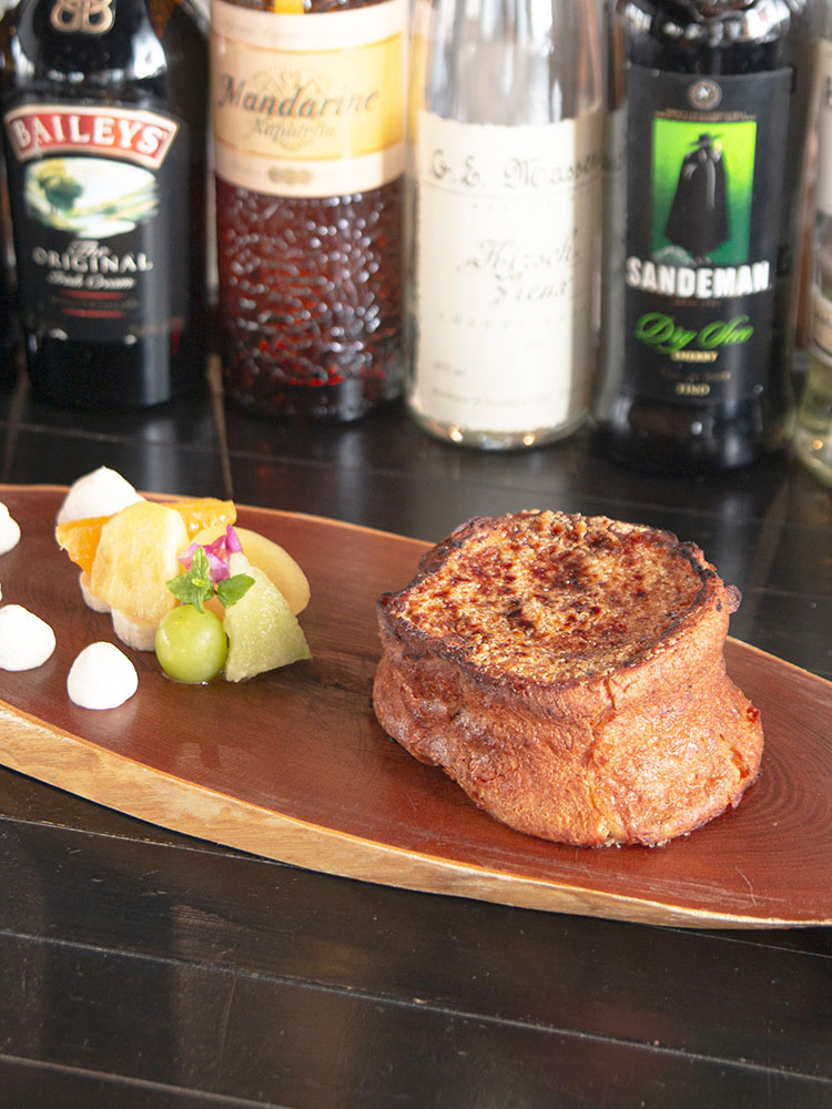 表面にカソナードというフランスのブラウンシュガーをまぶし、カリカリになるようキャラメリゼ。外はカリッと香ばしく、中はふわとろで甘~いブリュレフレンチトーストをご紹介。パインやシャインマスカットなどのフレッシュなフルーツと合わせるとさっぱり、純生クリームを合わせるとまろやかでコクの深い味わいが加わります。なお、注文が入ってから焼き上げ、仕上がりは15分ほどかかるので、来店前に事前予約しておくのがおススメですよ。(日々ウララ編集部・坂本)