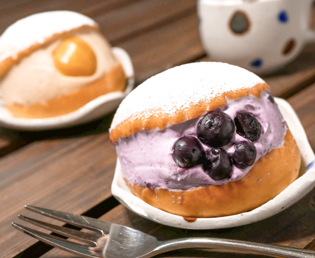「ブルーベリーのマリトッツオ」と「マロンのマリトッツオ」各220円