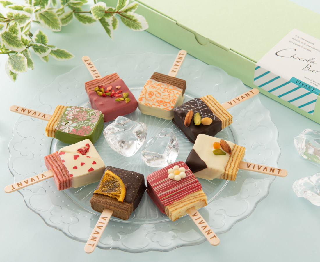 福井県産コシヒカリの米粉を使用した16層の平焼きバウムを、たっぷりのチョコでコーティングしています。しっとりした優しい口当たりで味わい深いショコラバーは、バウムクーヘンの頂点を決める「ファイナルクーヘン総選挙2021 春の陣」で、全国から選りすぐり155種類の中から5位に選ばれた実力派。かわいらしい見た目と美味しさで、まさに五感で幸せを感じるスイーツです。まだまだ残暑が残る9月、冷やしていただきたい方のために冷凍バージョン「ショコラバークール」も今秋新登場。5本、8本のセット販売もありますよ。