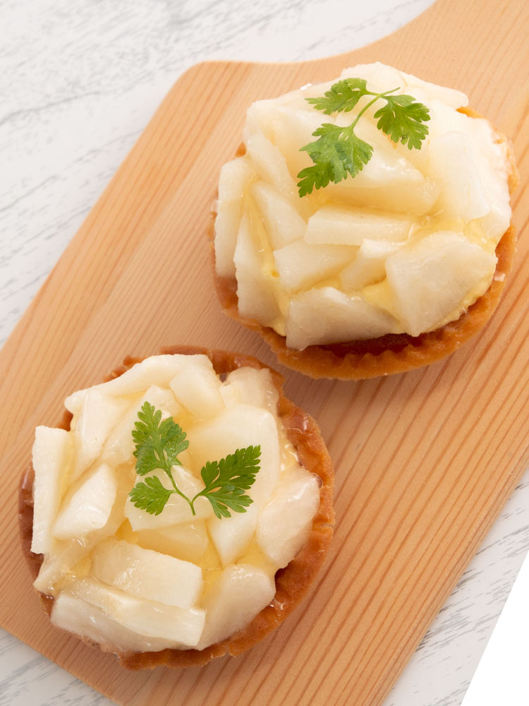 旬のフルーツを使ったプチタルトを販売する三国の『CRUSTUM』より「梨のプチタルト」をご紹介します。サクサクタルトとカスタードの上には梨がこぼれ落ちそうなくらいたっぷり。シャキシャキで、ほどよく酸味が抑えられたあわら産のものを使用しています。瑞々しい梨のフルーティーさとカスタードの優しい甘さが絶妙なハーモニー♪ コチラは9月末頃までの販売予定となっており、今しか出会えない味ですよ。お早めにっ!(日々ウララ編集部・坂本)
