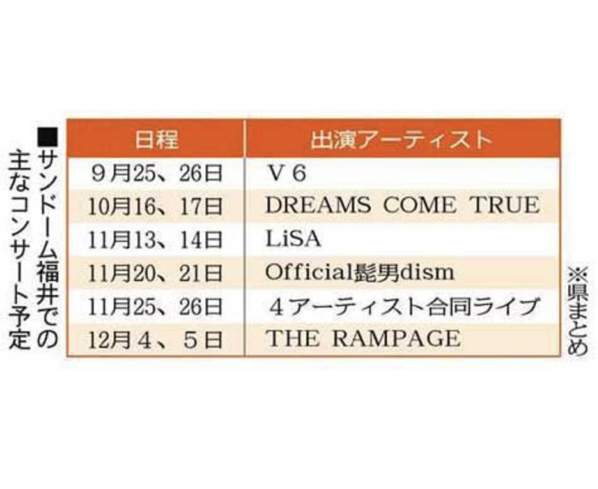 新型コロナウイルスの収束が見通せない中、サンドーム福井で九月下旬から年末にかけ、大規模イベントの開催が相次ぐ。人気のアイドルグループやバンドなどのコンサートで、県外から多くのファンが詰め掛けることが予想される。県は、会場周辺の警備や直行直帰の呼び掛けなど、感染対策に万全を期すとしている。 (山本洋児)