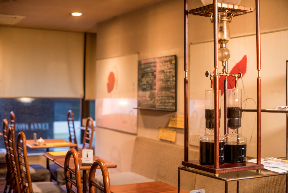 開店当時から変わらないダッチコーヒーも店の名物。ご飯は米がつぶれないようにあえて家庭用の炊飯ジャーで小分けにして炊いている。