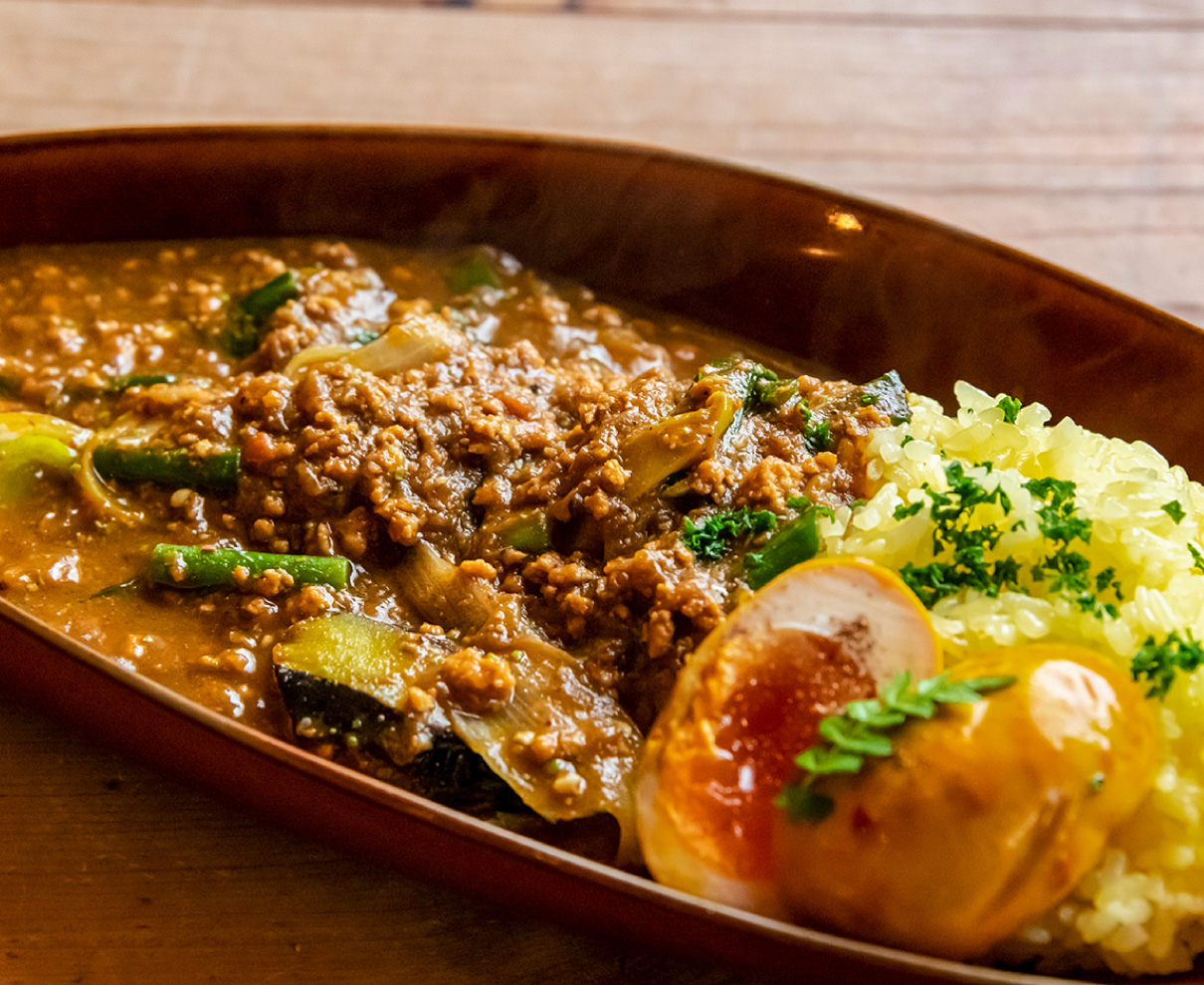 場所は福井市御幸の古いビルの1Fで、店主自らがリノベーションしたという店は元喫茶店。もう何年もこの場所で営業しているかのような佇まいをした店内は、スパイスのいい香りに包まれている。