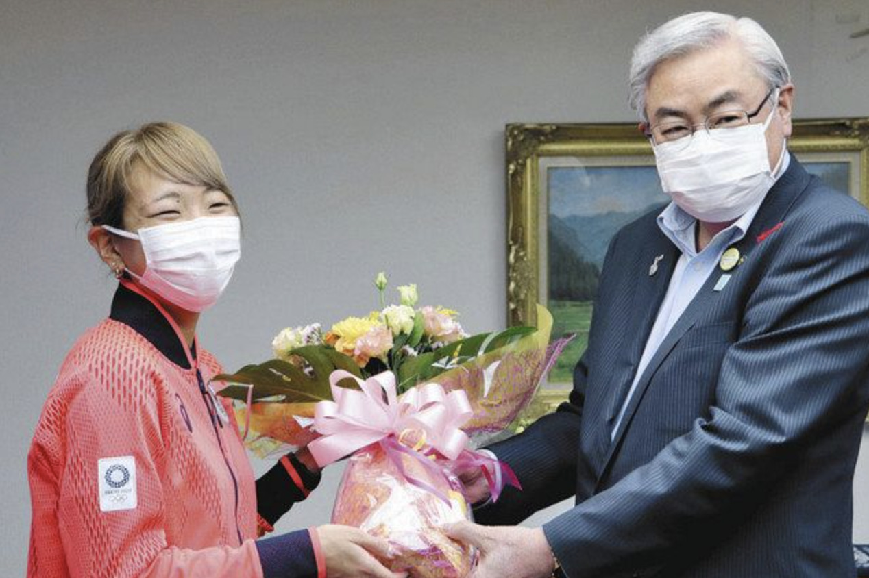東京五輪トライアスロン女子 岸本選手東京五輪トライアスロン女子に出場した岸本新菜選手(25)=県スポーツ協会・稲毛インター所属、埼玉県出身=が一日、福井市役所を訪れ、東村新一市長に出場報告した。「パリ五輪に向けた戦いがもう来年始まる。出場枠の確保に向け、ランキングを上げていく」と誓った。