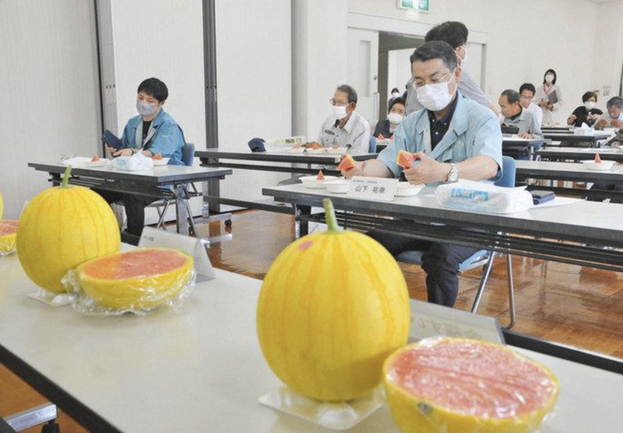 福井市のオリジナル品種「金福すいか」の後継品種選びが進められている。十二日には市園芸センターで後継品種の試食会が開催され、生産農家らが味を確かめた。