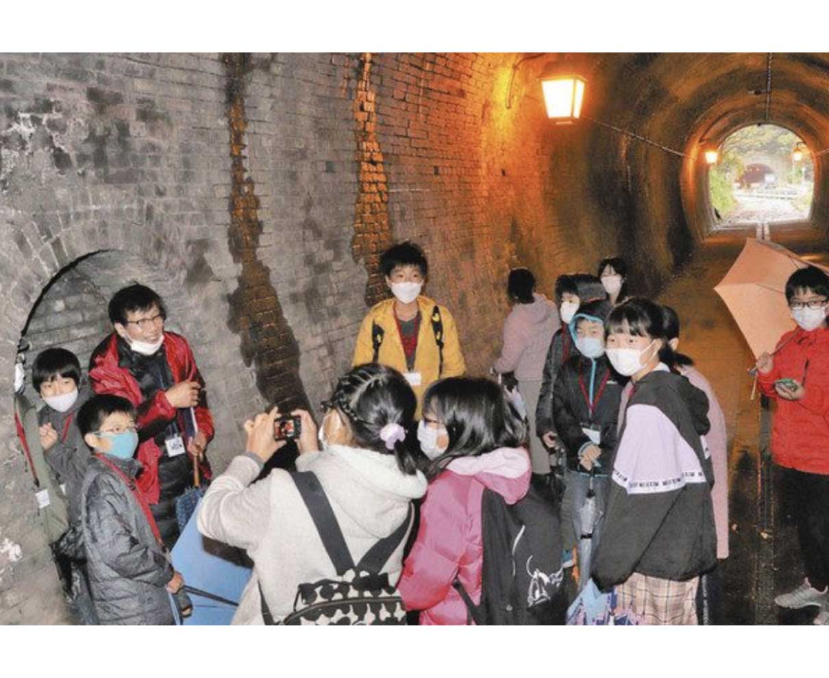 敦賀市、南越前町、滋賀県長浜市にまたがる旧北陸線の鉄道遺産を次世代に伝える「日本遺産ガイド体験講座」が二回にわたり現地で開かれている。三市町でつくる観光連携協議会の主催。初回の十一月二十七日は三市町の小学五、六年生十七人が参加し、敦賀−今庄間の旧北陸線トンネル群を地元ガイドの案内で見学した。 (林侑太郎)