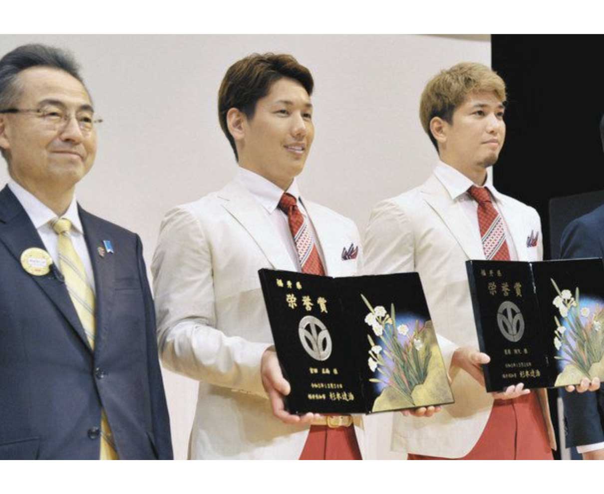 東京五輪の野球で金メダルを獲得した福井市出身の吉田正尚(28)=オリックス、栗原陵矢(25)=ソフトバンク=の二選手への県栄誉賞の贈呈式が二十六日、福井市のショッピングシティ・ベルであった。「侍ジャパン」悲願の金メダル獲得に貢献した二人は「来年も良いニュースを届けたい」と球団での活躍を誓った。