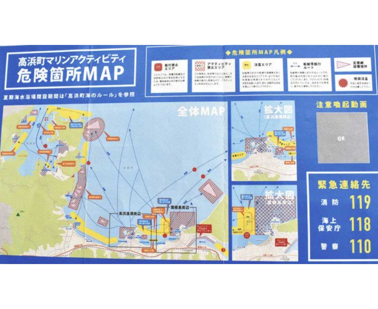 高浜町和田沖でのマリンスポーツ中の死亡事故を受け、海の安全を検討している「高浜町マリンアクティビティ対策会議」は九日夜、町役場であり、漁業者、マリンアクティビティ体験者および提供事業者らが守るべきルールを決めた。禁止や注意エリアなども見直した危険箇所マップも作成。これらをルールブックにまとめて関係者に配布し、危険箇所マップは海岸などの看板に示して注意喚起する。(相原豪)