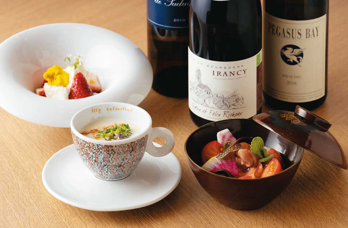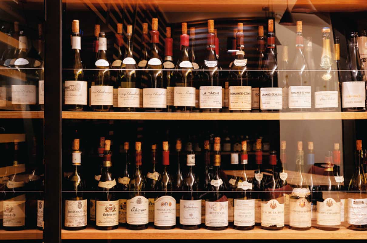すっかり定着した「ペアリング」というワード。福井市片町にオープンした『les quatre hommes』ではコースでサーブする料理それぞれに合うワインを、ソムリエの資格も持つシェフがお客と相談をしながらセレクト。リストも豊富で、セラーには常時200〜300本のワインを取り揃え、そのほとんどがフランス産だ。中には希少性の高い1本もあり、また一方で、ビギナーにも気軽にワインと触れ合って欲しいとの想いから、味も価格も申し分ないグラスワインも用意している。