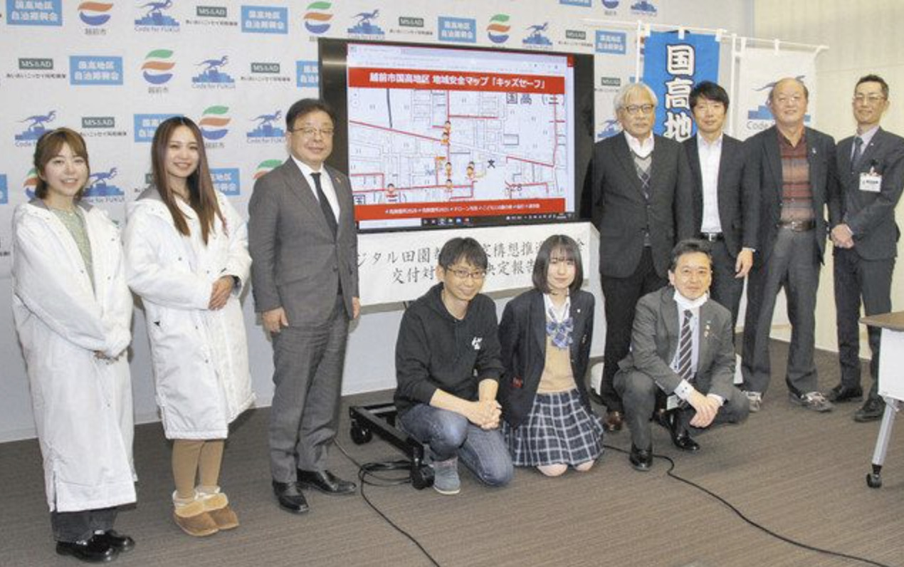越前市国高地区の児童通学路の危険箇所見える化と情報共有を進める地域安全安心マップのアプリ「キッズセーフ」が国の「デジタル田園都市国家構想推進交付金」対象となった。