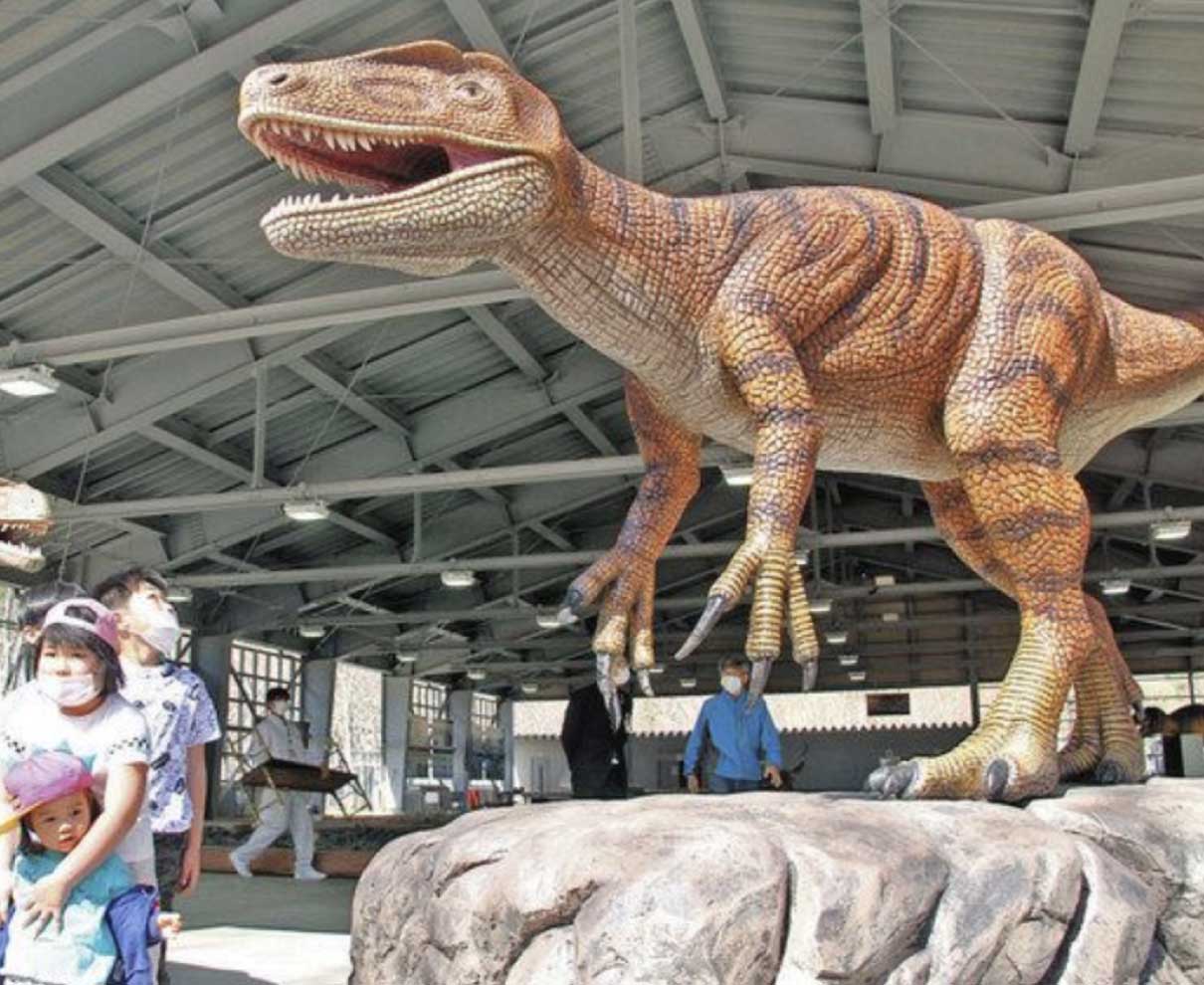化石発掘体験が楽しめる大野市化石発掘体験センター「HOROSSA!」が十七日、通常営業を再開した。二〇一七年の開館から五周年を迎えるとあって、施設がある和泉地区が化石産地であることを広くPRしようと市が新たに恐竜のモニュメントを製作し設置した。 (平林靖博)