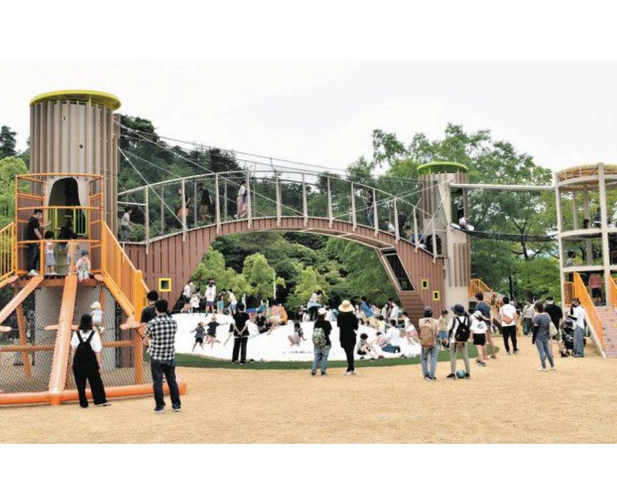 敦賀市総合運動公園のちびっこ広場が「多世代型ウェルネス広場」に生まれ変わった。子どもの対象年齢に応じて複数のゾーンに分け、空気の力を利用した「トランポリン」など好奇心をくすぐる大型遊具を設置した。ウオーキングコースもあり、子どもから高齢者まで楽しみながら体力と健康づくりができる。