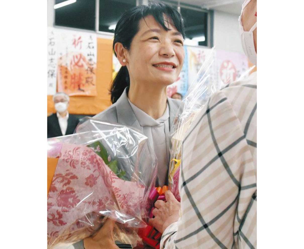 大野市長選は十二日、投開票され、現職の石山志保氏(47)=自民、公明推薦、菖蒲池=が、政治団体「福井県をよくする会」代表で、新人の元市議ダニエル益資(よしもと)氏(42)=明倫町=を破り、再選を果たした。