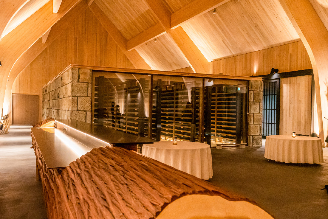 イベントスペースを併設した「臥龍棟」には、3年前から本格的に製造を始めた日本酒スパークリング「awa酒」のセラーがあり、8000本を貯蔵しています(一般非公開)。微生物の力を生かした日本酒ならではの発酵技術を取り入れているため、最低でも15か月間の熟成期間を経て出荷となります。「持続性のある豊かな泡と芳醇で複雑な香り、コクと滑らかな旨味のある、新しい日本酒がこの場所から生まれようとしています」と、杜氏の畑山浩さんは自信をのぞかせます。