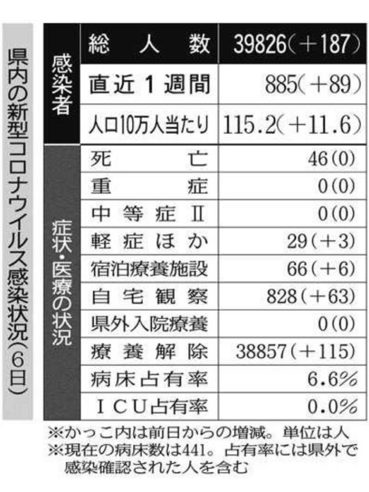 小学生が顕著・新型コロナ県は6日、新たに187人が新型コロナウイルスに感染したと発表した。感染者1人が平均何人にうつすかを示す「実効再生産数」は1.11で、5月21日(1.09)以来、46日ぶりに1を上回った。県の担当者は「感染拡大傾向に転じた」とみている。(水野志保)