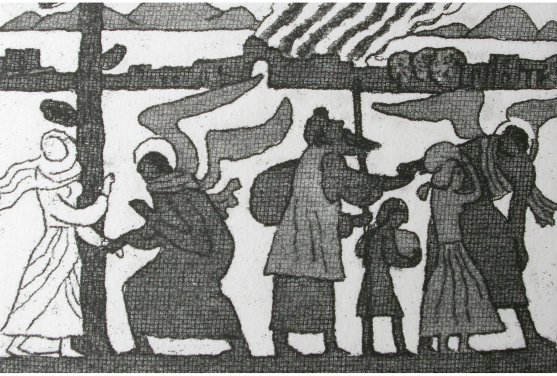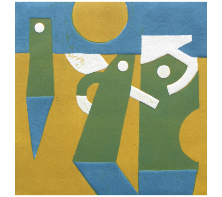 「塩の柱になったロトの妻」15.2×15.2 リノリウム版画/五百崎智子