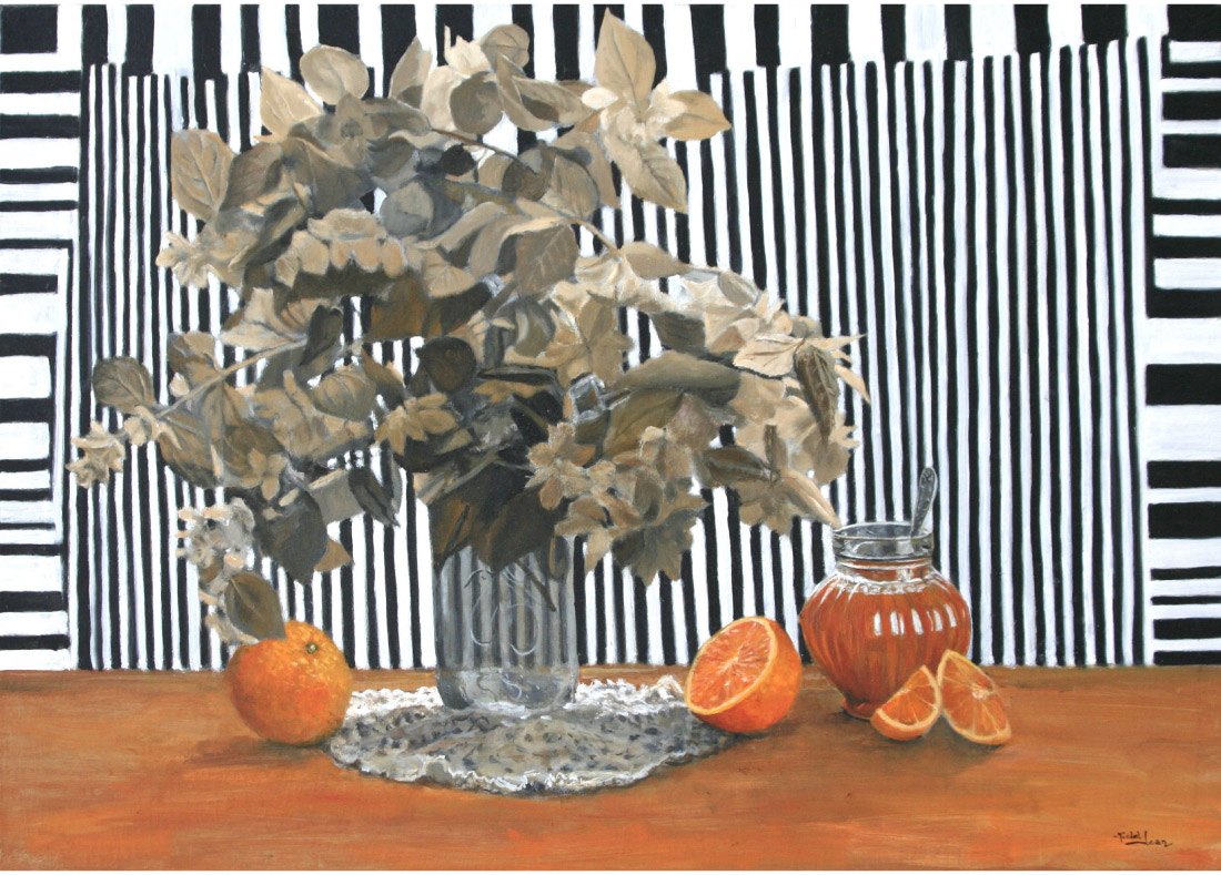 「花とオレンジ」65×26(15M)麻布に油彩/ミッシェル・ジョン