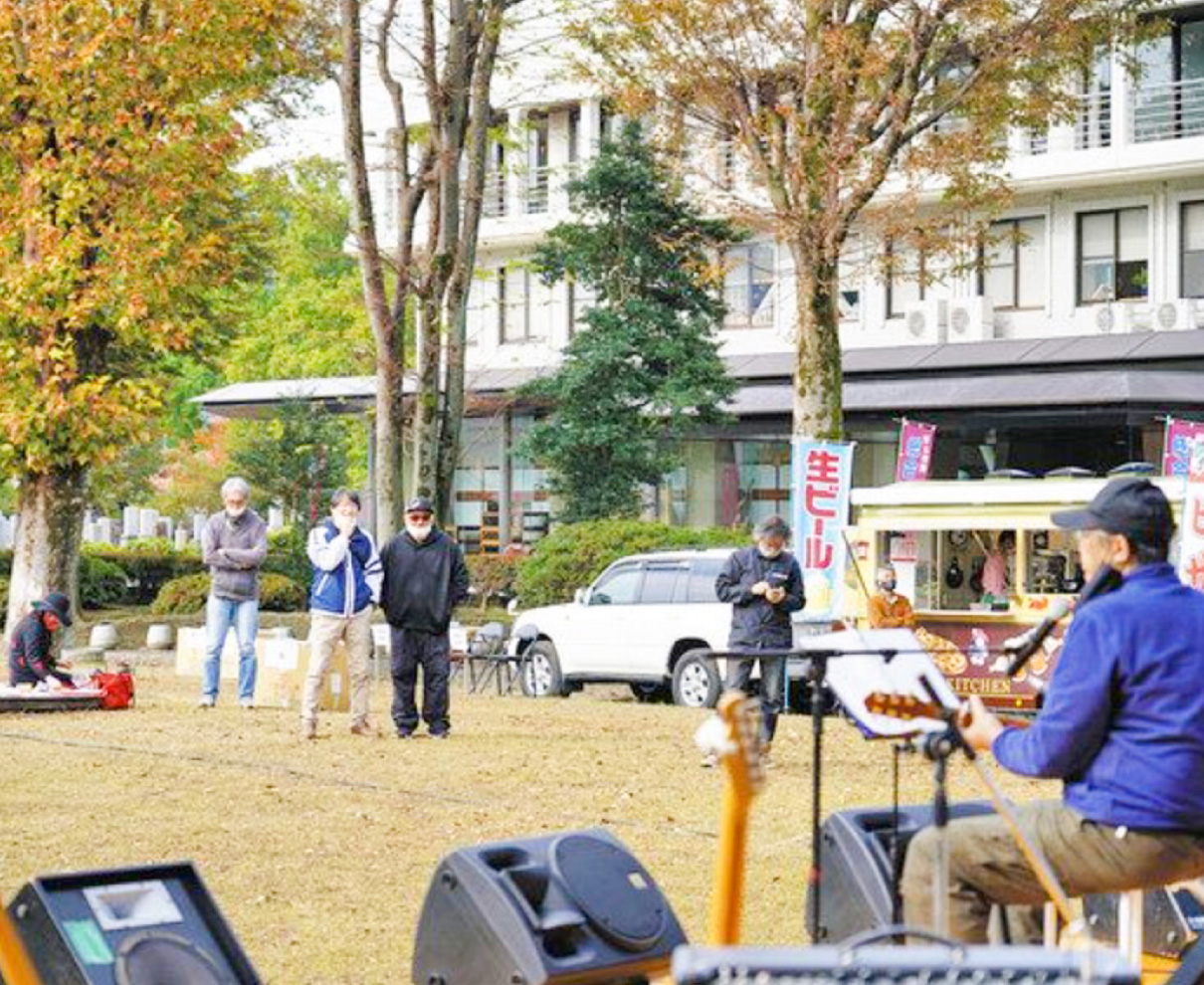 勝山市中央公園で30日、市内の音楽愛好家らによる初めてのライブイベント「日曜ニコニコライブ」が開かれた。有名アーティストの曲の演奏などで会場を盛り上げた。