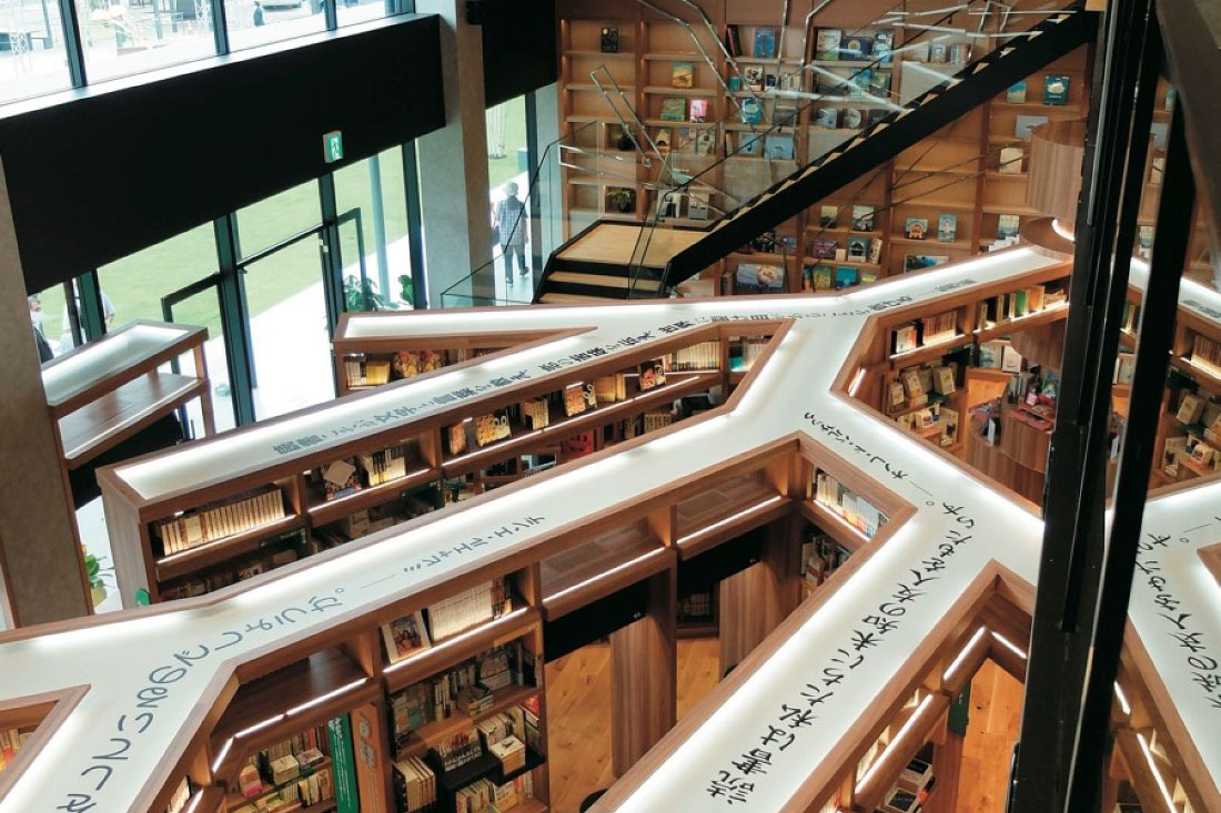 敦賀駅前に完成した複合施設『otta』内の『ちえなみき』は、書店だけではない魅力があります。まるで知恵の樹の中に囲まれたような空間は、これまでの書店とは一線を画す知の体系で書籍が並べられ、よりディープな知的世界にいざなってくれます。
