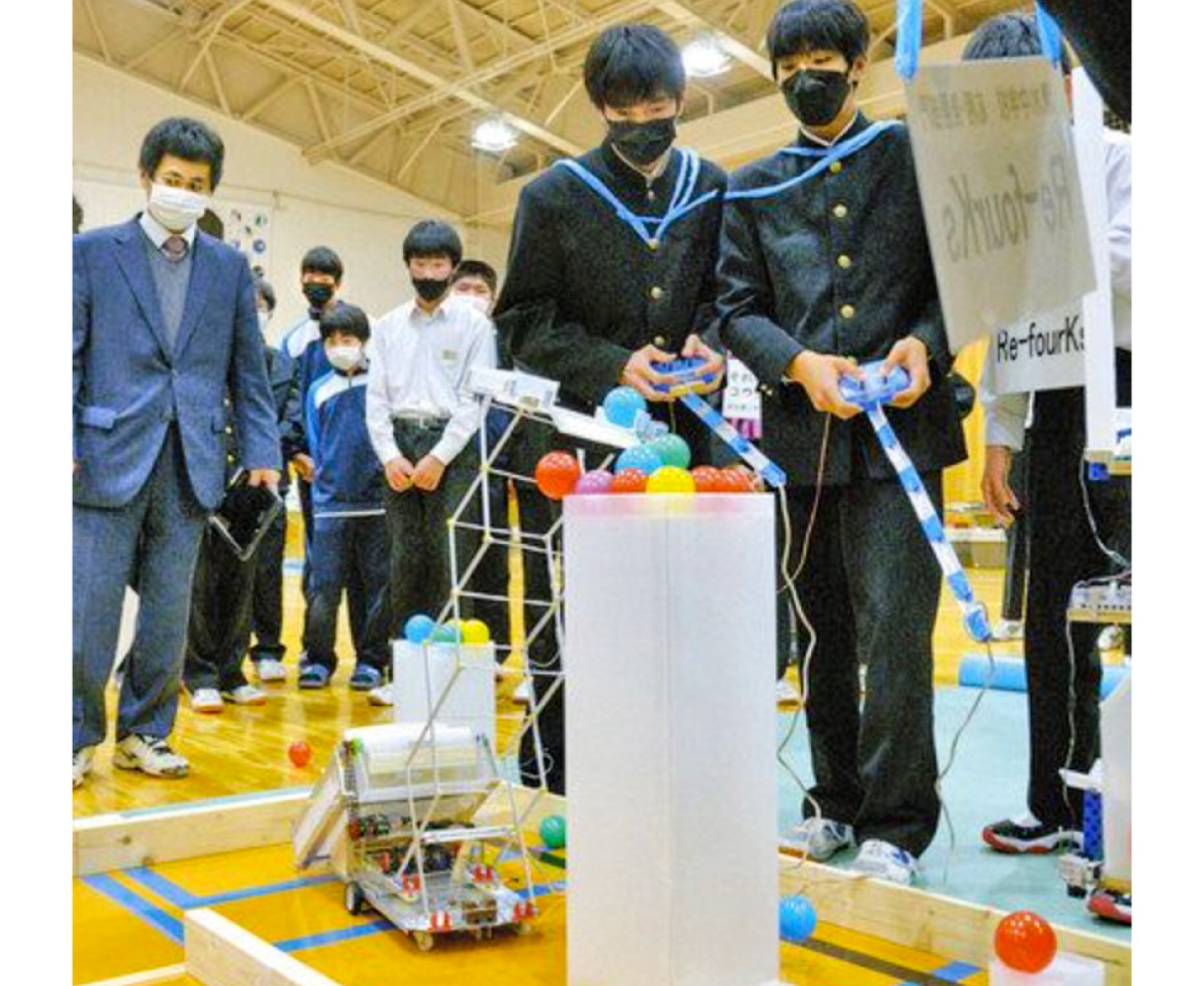 中学生が中学生が設計、製作したロボットの力と技を競い合うロボットコンテストの県大会が23日、福井市の科学技術高校で開かれた。(浅井貴司)