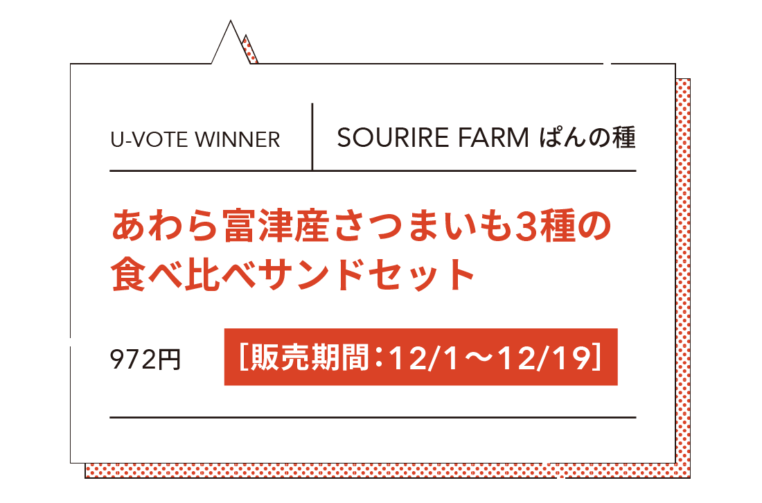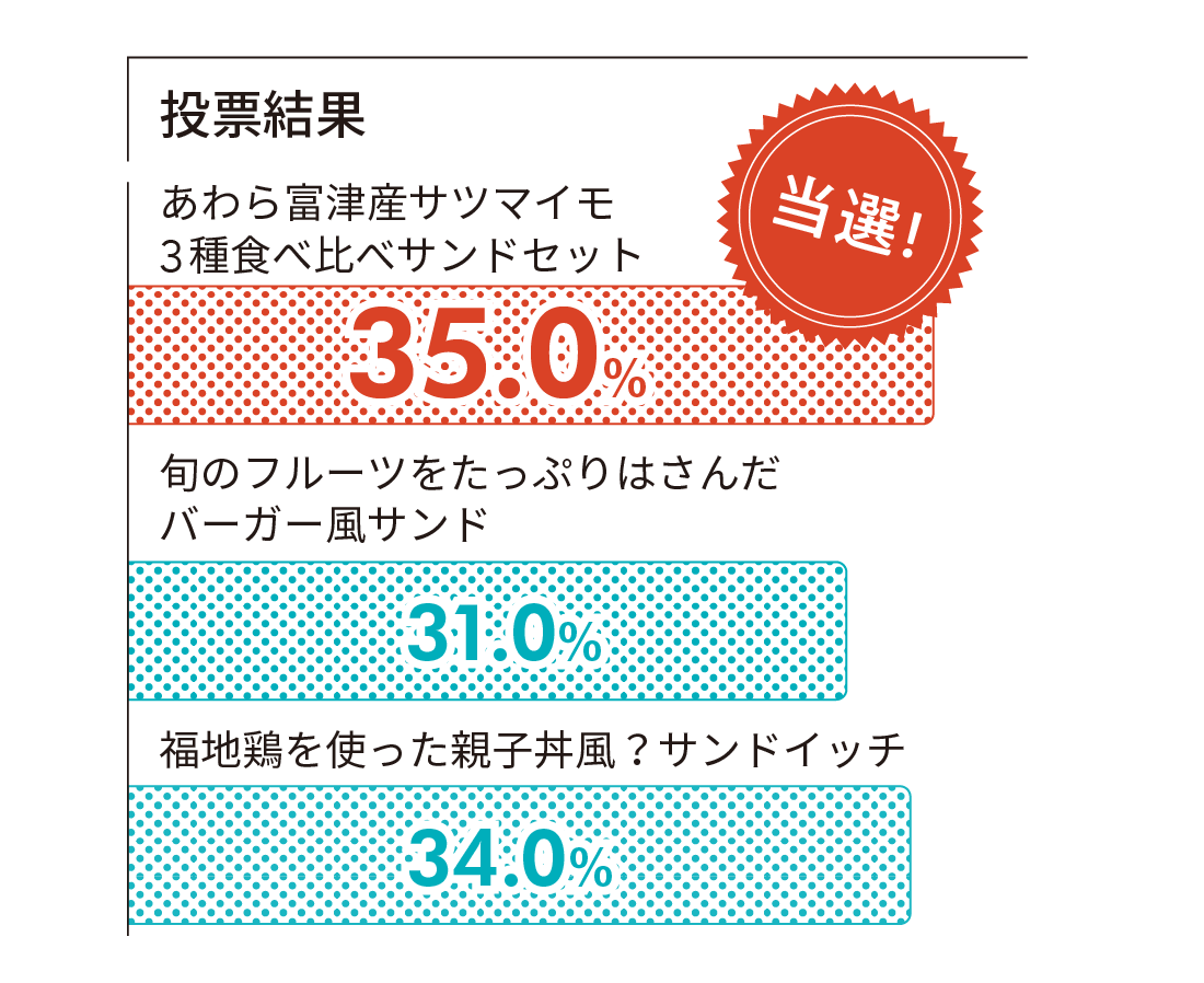 この中から最多得票を勝ち取ったのが「あわら富津産サツマイモ3種食べ比べサンドセット」。