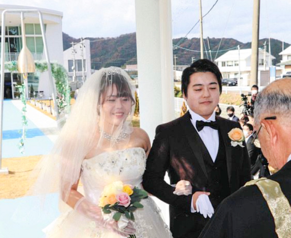 ウエディングドレスを展示する美術館を中心とした若狭町の複合施設「BRIDAL LAND WAKASA(ブライダル・ランド・ワカサ)」で11月27日、開館後初となる結婚式が開かれた。美術館の西村房子館長を中心に、施設側が入場の演出や食事会の料理など式全体をプロデュース。