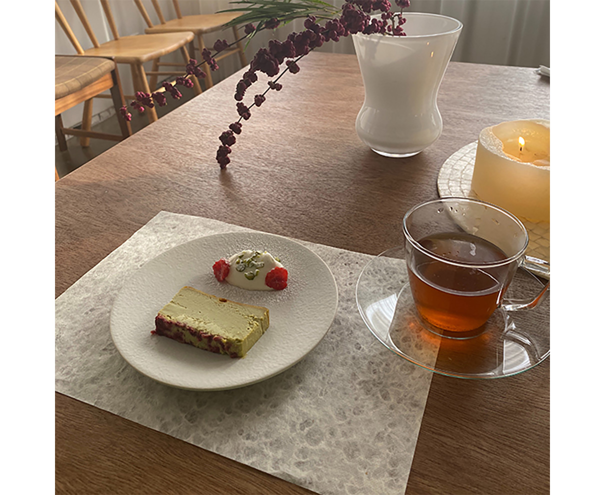 ピスタチオのグリーンと底に忍ばせたラズベリーのピンクといった、カラフルな色合いも魅力的。華やかな見た目は、より一層クリスマス気分を盛り上げてくれそうですよね!