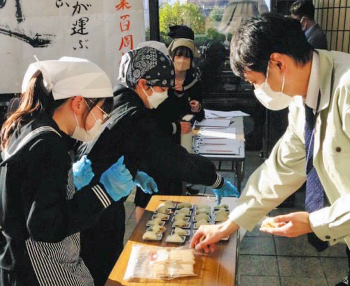 小浜市小浜第二中学校の1年生10人が14日、市役所で、サバと地場産野菜のあんを肉まんのように皮で包んだ「サバまん」の試食会を開き、知名度の向上を図った。回収したアンケートを活用し、今後の情報発信などを考える。